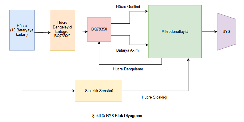 Batarya Yönetim Sistemi (BMS), bir batarya paketinin güvenli, verimli ve uzun ömürlü bir şekilde çalışmasını sağlamak amacıyla tasarlanmış elektronik sistemler bütünüdür. BMS, hücre voltajlarını ve sıcaklıklarını izlemek, şarj-deşarj işlemlerini kontrol etmek, olası arızalara karşı koruma sağlamak ve dengeleme işlemlerini yürütmek gibi temel işlevlere sahiptir. Dengeleme işlemi, batarya hücreleri arasındaki voltaj farklarını azaltarak tüm hücrelerin eşit seviyede şarj olmasını sağlamayı amaçlar. Bu işlem, pasif veya aktif dengeleme yöntemleri ile gerçekleştirilebilir. Pasif dengeleme yönteminde fazla enerji, dirençler üzerinden ısıya dönüştürülerek sistem dışına atılır. Bu yöntem basit ve düşük maliyetlidir ancak enerji verimliliği düşüktür. Aktif dengeleme ise fazla enerjinin diğer hücrelere aktarılmasını sağlar; böylece enerji kaybı minimize edilir ancak sistem daha karmaşık ve maliyetlidir. Geliştirdiğimiz projede, uygulanabilirliği yüksek ve maliyet açısından avantajlı olması nedeniyle pasif dengeleme yöntemini tercih ettik. Bu sayede, hem sistemin işlevselliğini artırmayı hem de gerçek dünya koşullarında kolaylıkla kullanılabilecek pratik bir çözüm sunmayı hedefledik.